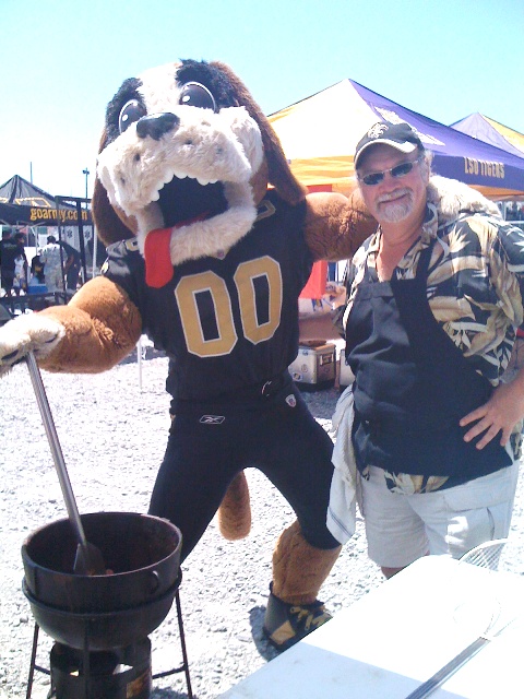 Even GUMBO, the Saints mascot came by to help us tailgate!