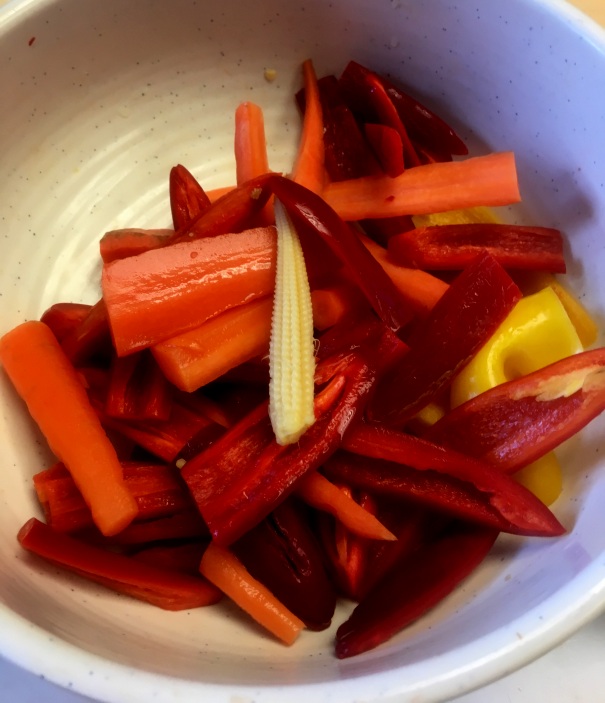 Pickled Peppers, Carrot Sticks, Baby Corn and Garlic Recipe